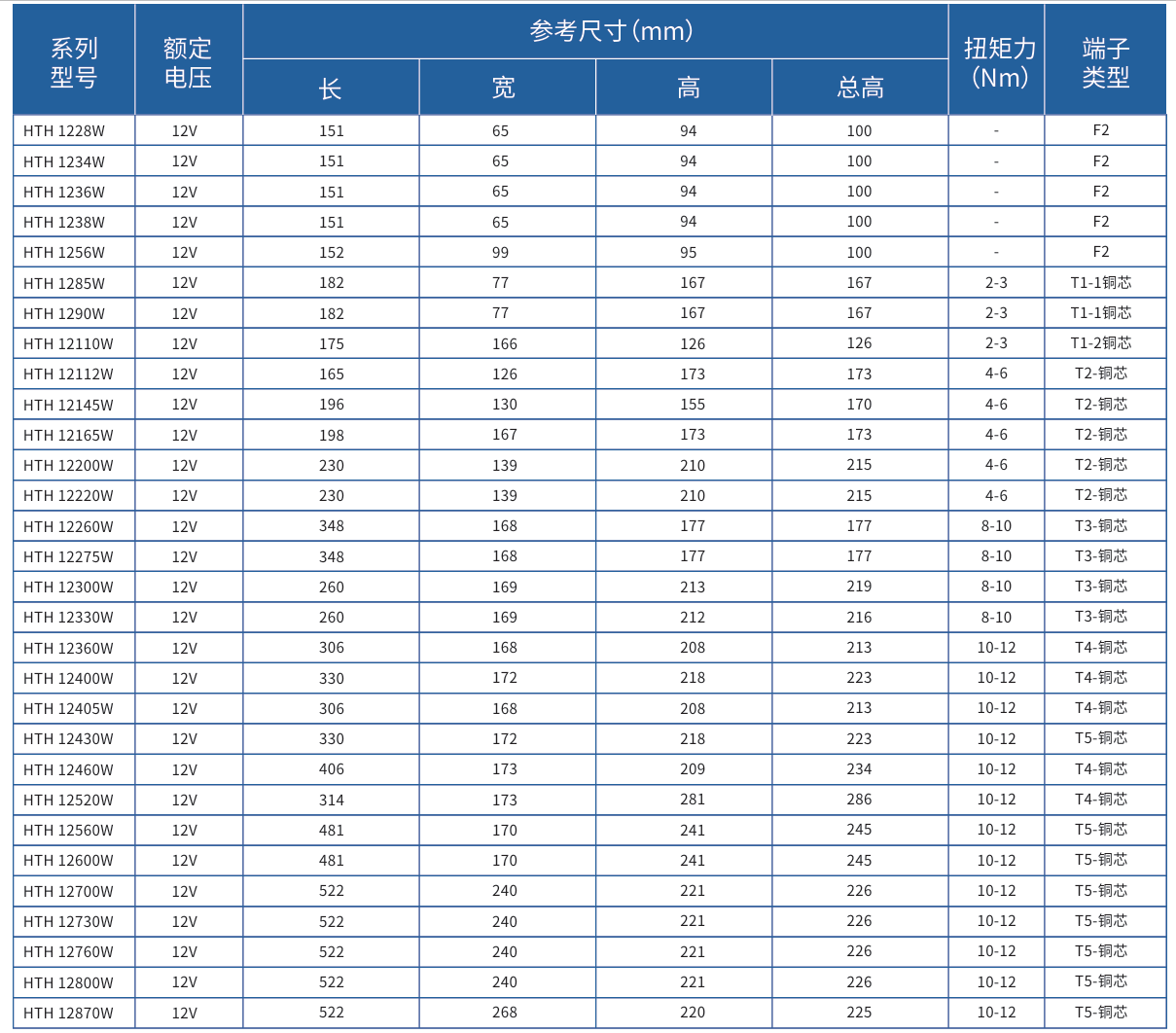 HTH系列蓄電池是高倍率型鉛酸蓄電池。采用 CCDR沖壓板柵,具有密度高、耐腐蝕、一致性好的特點 。此外板柵的高錫多元合金及特殊鉛膏配方,提高了板 柵的耐腐蝕性能。3D結構的設計,使板柵擁有更大表面 積有利于活性材料粘附,有效延長電池使用壽命。運用 先進的鑄焊、穿壁焊、熱封工藝,使得電池具有內阻低、 功率密度高等特點,因此該系列產品在15分鐘高功率 放電的情況下,可比普通AGM電池多輸出更高的功率, 從而用戶可降低配置所需電池數量或規格,減少初期投 資。外殼采用高強度ABS材料,提升使用安全性。